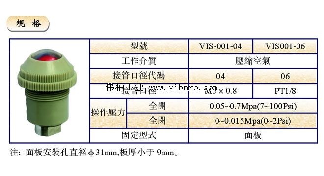 VIS001-06D,AIRTAC气源处理,指示灯